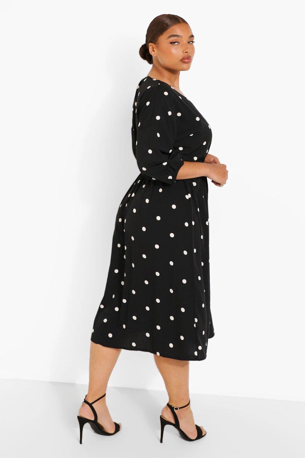 Plus Polka Dot Wrap Midi Dress Boohoo